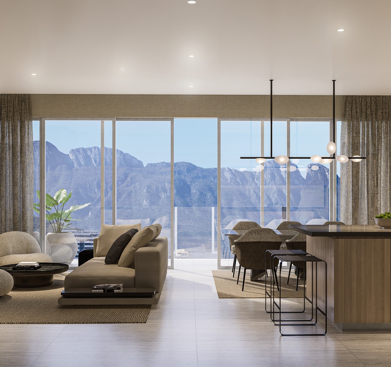 Cada departamento ofrece una experiencia residencial de alto nivel, donde el diseño contemporáneo se fusiona con materiales naturales y líneas limpias: