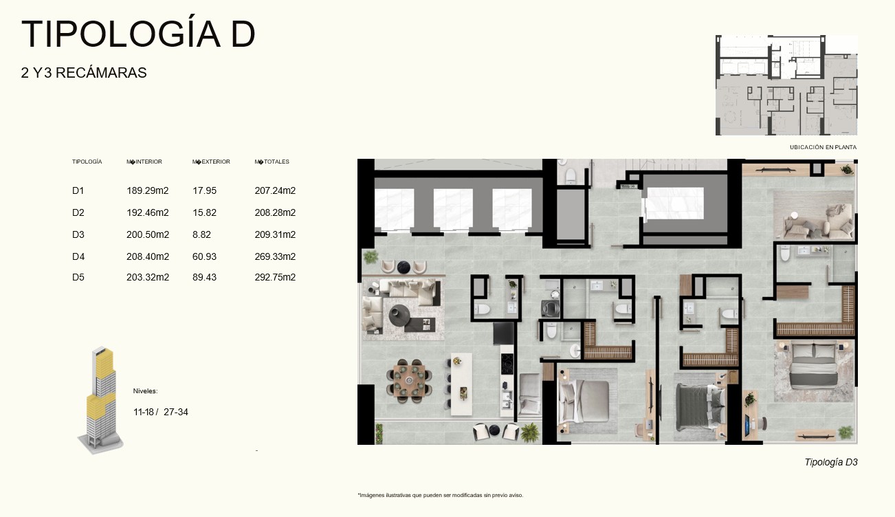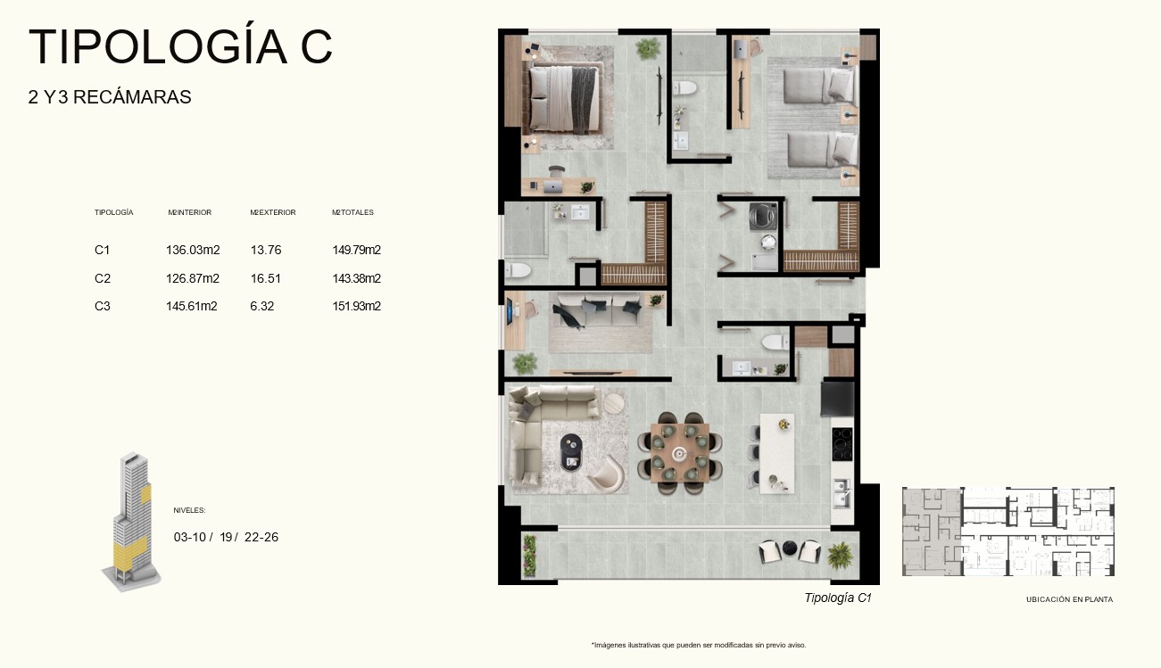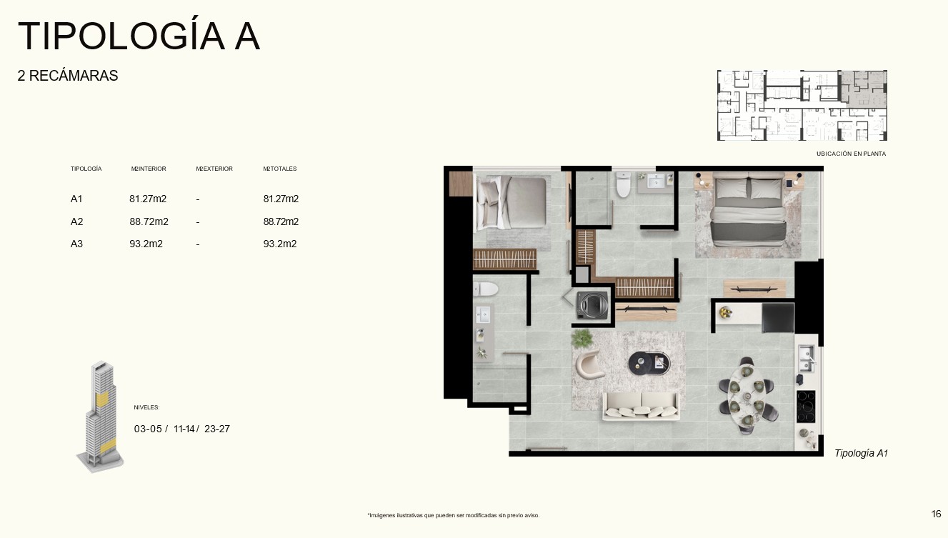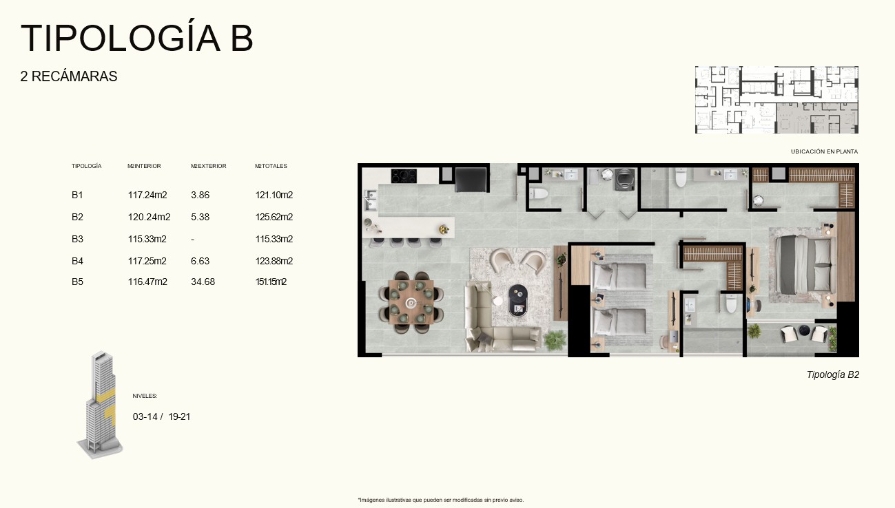 • Departamentos de 1, 2 y 3 recámaras con distribuciones amplias y funcionales.