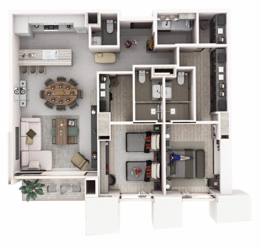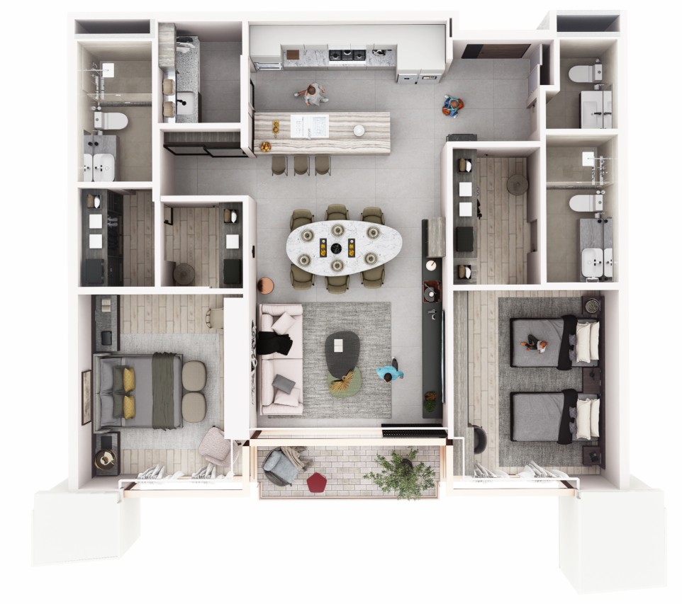 Diseñado para quienes buscan amplitud, privacidad y confort, ofrece residencias cuidadosamente planeadas con distribuciones funcionales y espacios generosos. Los departamentos cuentan con 3 recámaras, sala flex, 3.5 baños, walk-in closets, balcón, área de lavado y estacionamiento, logrando un equilibrio perfecto entre diseño, comodidad y elegancia.
